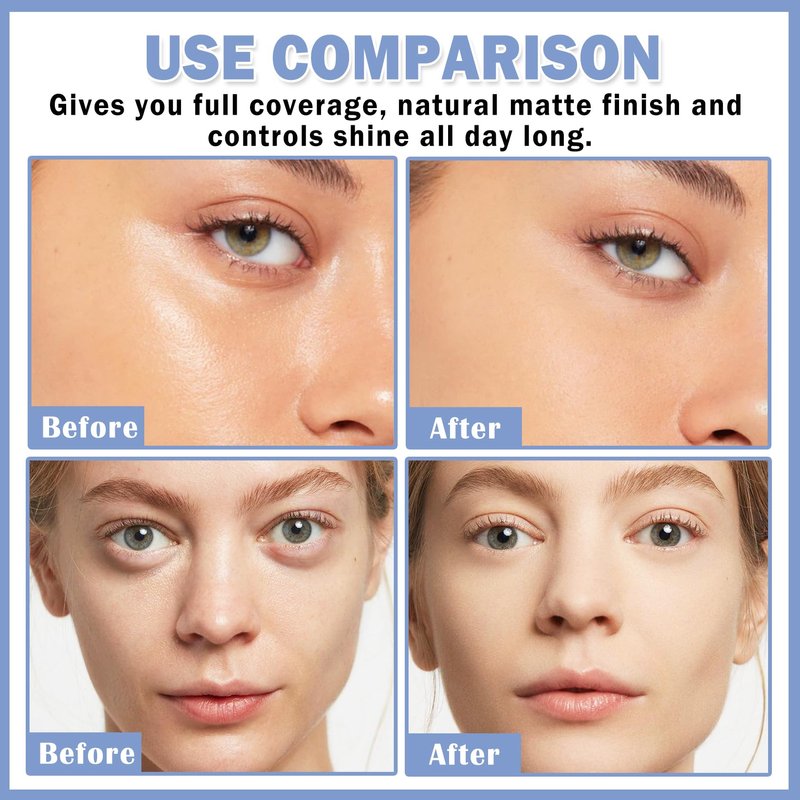- 【Matte Natural Appearance】 Just a few light presses to form a complete, perfect coverage , providing a natural matte finish to the skin, making the complexion look softer and more natural, without adding too much shine to the skin.