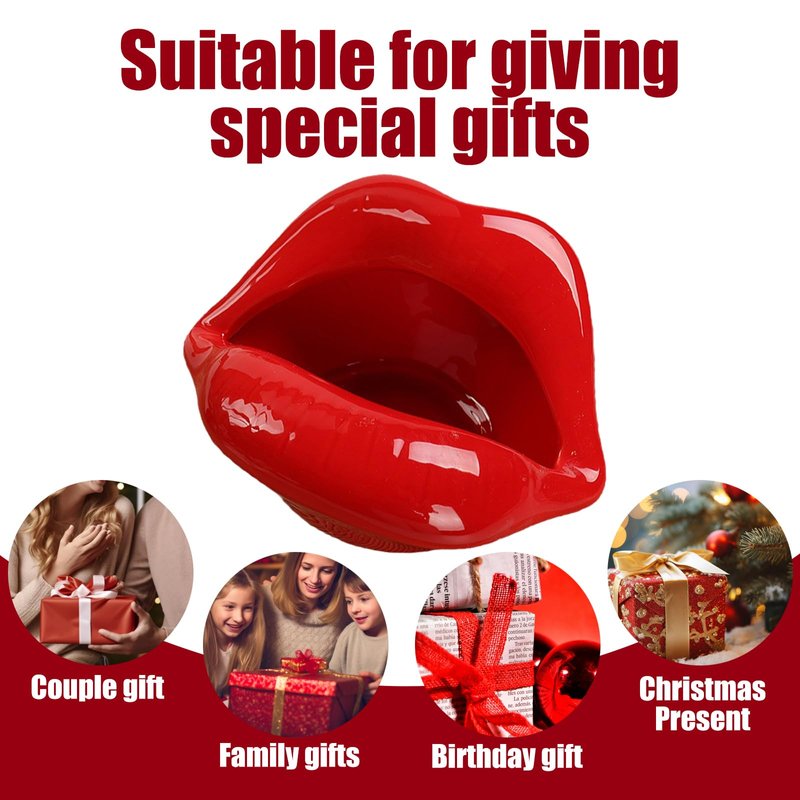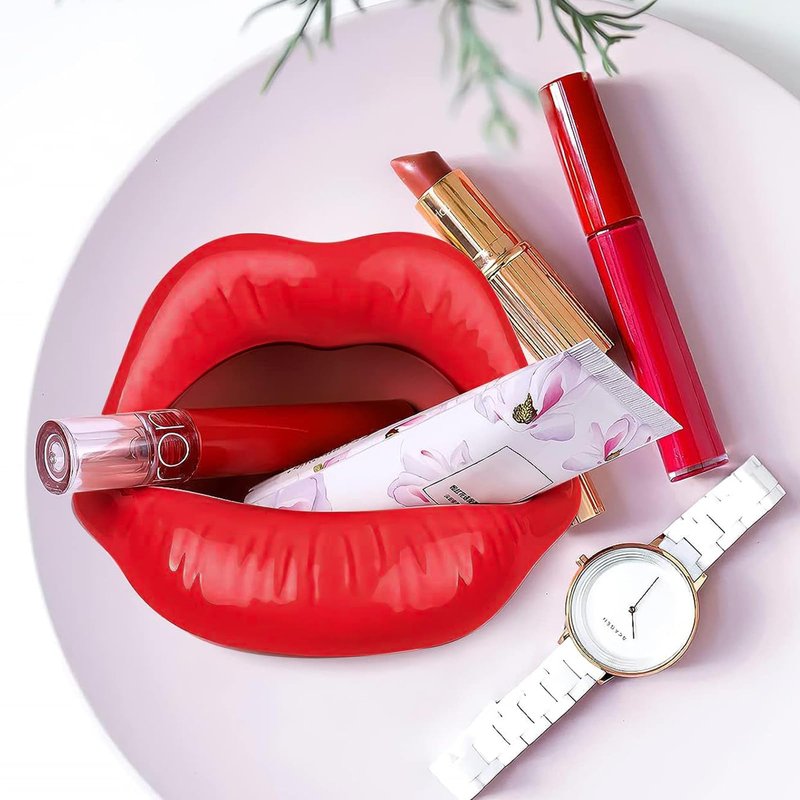 CAIRIAC Ceramic Red Lips Lipstick Ring Holder, Lip ceramic holder, Suitable for Storing Cosmetics, Hair Clips, Jewelry as Gifts for Women, Birthdays, and Valentine's Day (Dark Red)