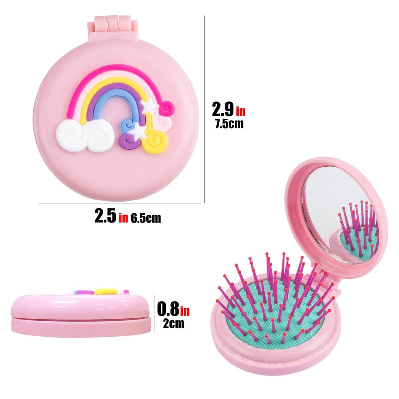 CAIRIAC Pink Folding Hair Brushes, Rainbow Brushes Mirror Set, Stylish Handheld Mirror Hair Tools, Travel Hair Brush with Mirror for Girls Women
