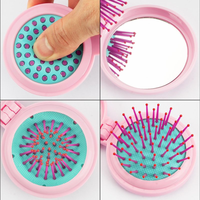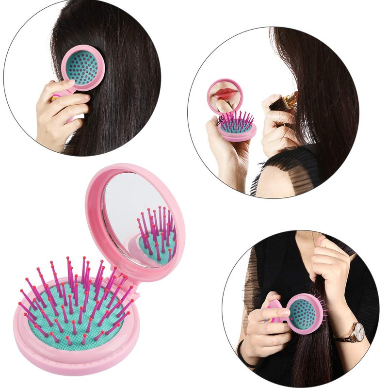 - 2-in-1 hair brush and Mirror is easily folded and convenient to carry somewhere, such as picnics, camping trips, or outdoor activities.