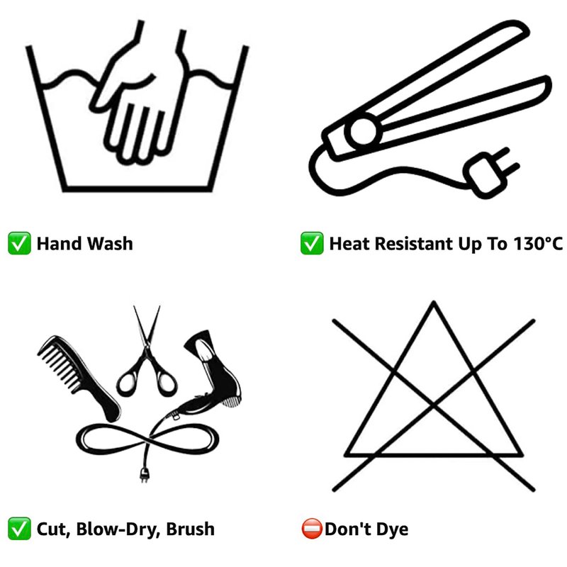 - High quality heat-resistant synthetic fibres up to 130°C, Washable, feels like real hair