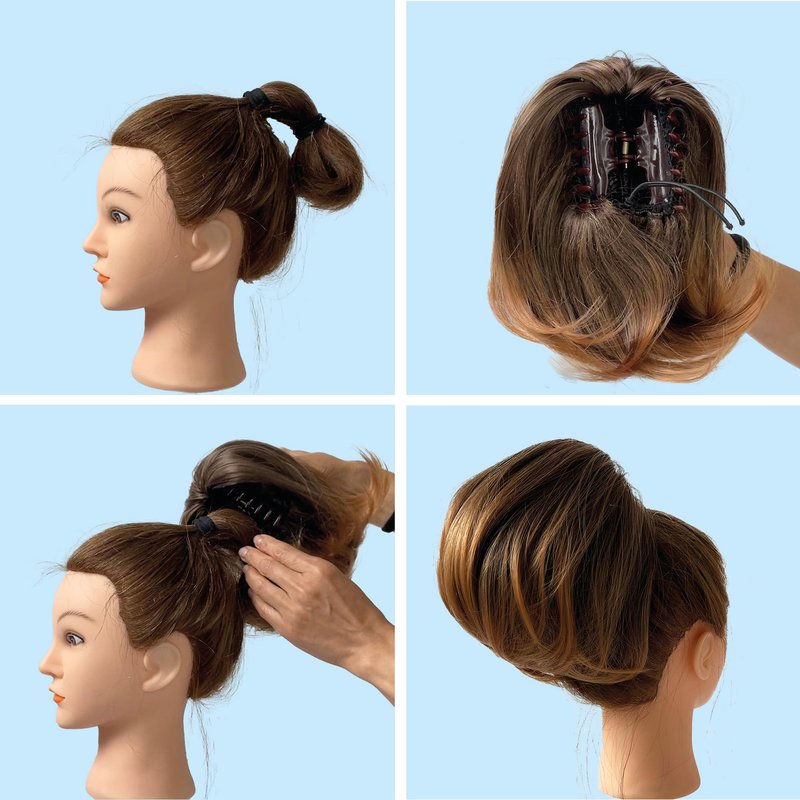 CAISHA Bun Hairpiece Ponytail With Butterfly Clip Hair Bun Bridal Hairstyle Hepburn Bun Scrunchie Straight Black H401