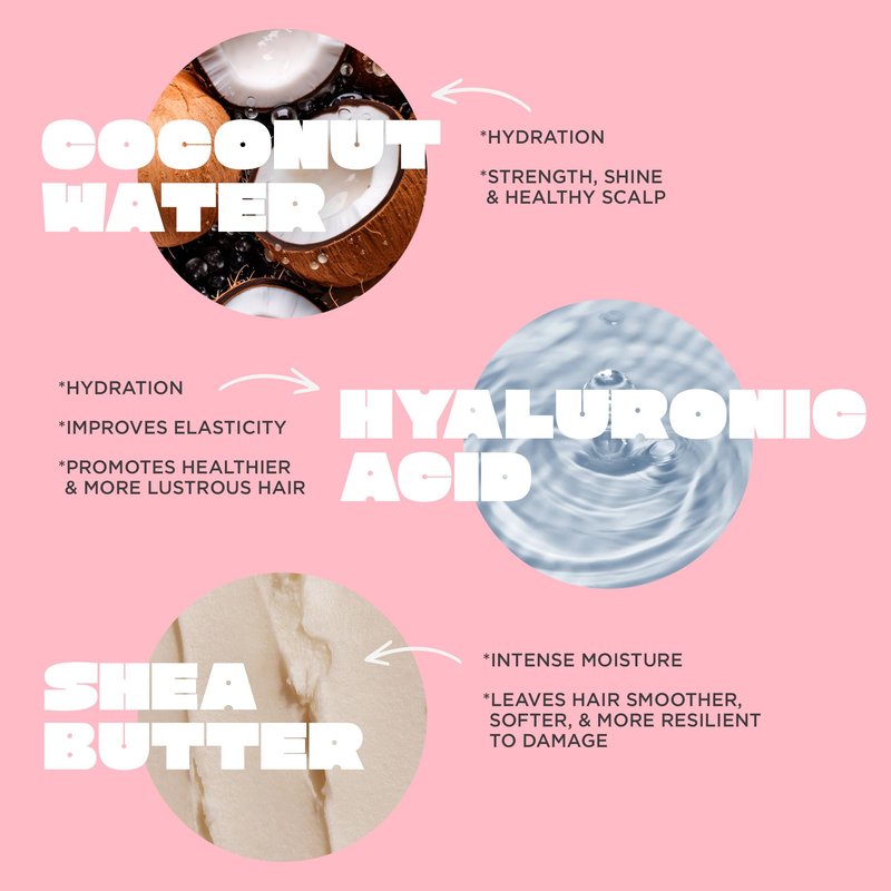 - GOOD FOR YOU INGREDIENTS: We pour in coconut water, hyaluronic acid & shea butter to give you lightweight hydration. Helps replenish & moisturize dry hair of all hair types (including: straight, wavy, curly).