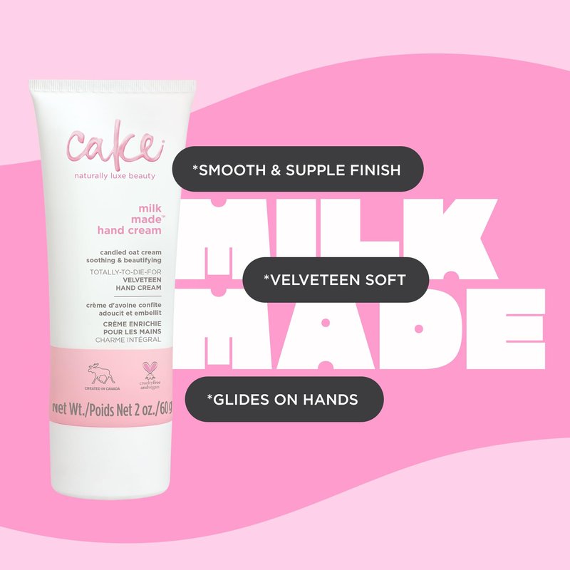 Cake Beauty Velveteen Hand Cream, Milk Made - Soothing, Lightweight Hand Cream - Oat Extract Concentrate, Marshmallow Root Extract & Shea Butter - Travel Sized Hand Cream - 60 Ml
