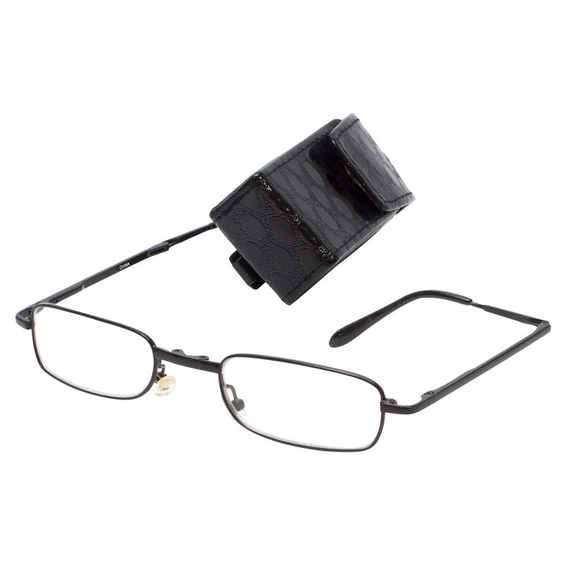 Calabria 308 Folding Reading Glasses +1.25 Black Men Women Slim Foldable Pocket Reader Spring Hinge Eyeglass Compact w/Case