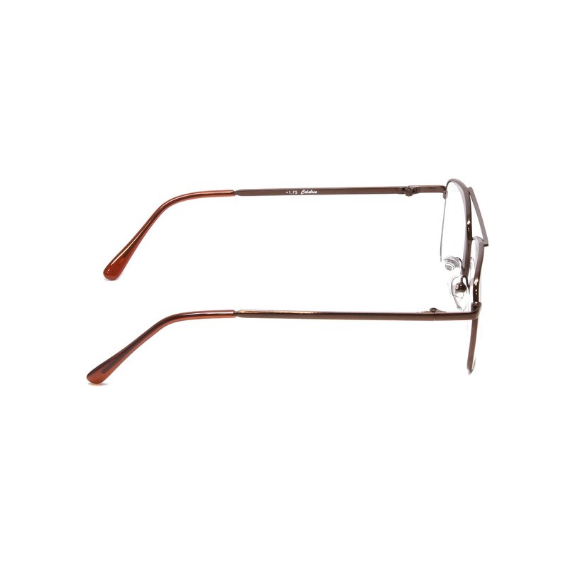 Introducing the Calabria 8151 Aviator Reading Glasses, the epitome of style, functionality, and comfort. Crafted from durable, high-quality metal, these glasses promise longevity, ensuring they are robust enough to withstand daily wear. Yet, they remain lightweight, offering a comfortable experience that makes them a delight to wear for extended periods. The frames are available in three classic colors - Brown, Gold, and GunMetal, allowing you to choose a style that best matches your personality and preferences. With a timeless Aviator design, these glasses are a versatile accessory, suitable for all face shapes. The larger lenses cover the entire eye, improving your reading experience and removing the need for constant downward viewing. These glasses also feature single power lenses crafted from clear polycarbonate, ensuring a distortion-free viewing experience. The lenses are lightweight and resistant to impact, providing optimal clarity regardless of what you're reading. With a range of magnification options from +0.50 to +6.00, you can choose a pair that perfectly matches your reading requirements. To maximize your comfort, these glasses come with adjustable silicone nose pads. The pads can be tailored to fit any nose shape, ensuring a secure and comfortable fit. The silicone material also prevents skin irritation and the formation of red lines that often appear after removing glasses. The Calabria 8151 Aviator Reading Glasses are not just glasses; they are a carefully crafted accessory designed to improve your reading experience while ensuring you remain stylish. Whether you're in a professional setting or lounging at home with a book, these glasses are the perfect companion for everyday use.