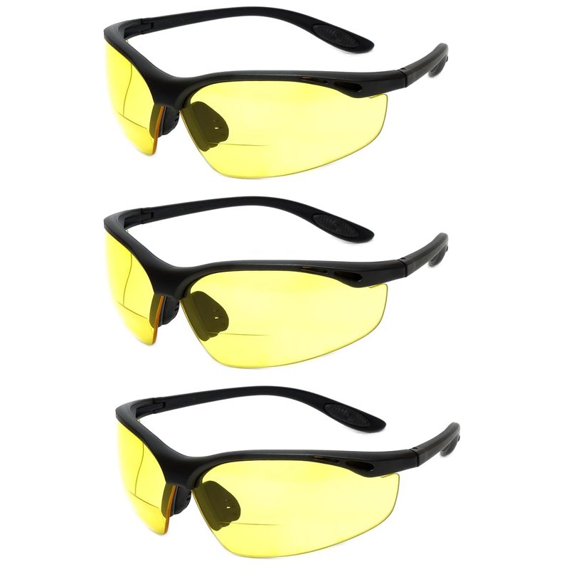 Calabria 91348 3 Pack Bulk Bifocal Reading Safety Glasses Readers +3.00 Yellow Men Women Wrap Around Eye Protection Anti Fog