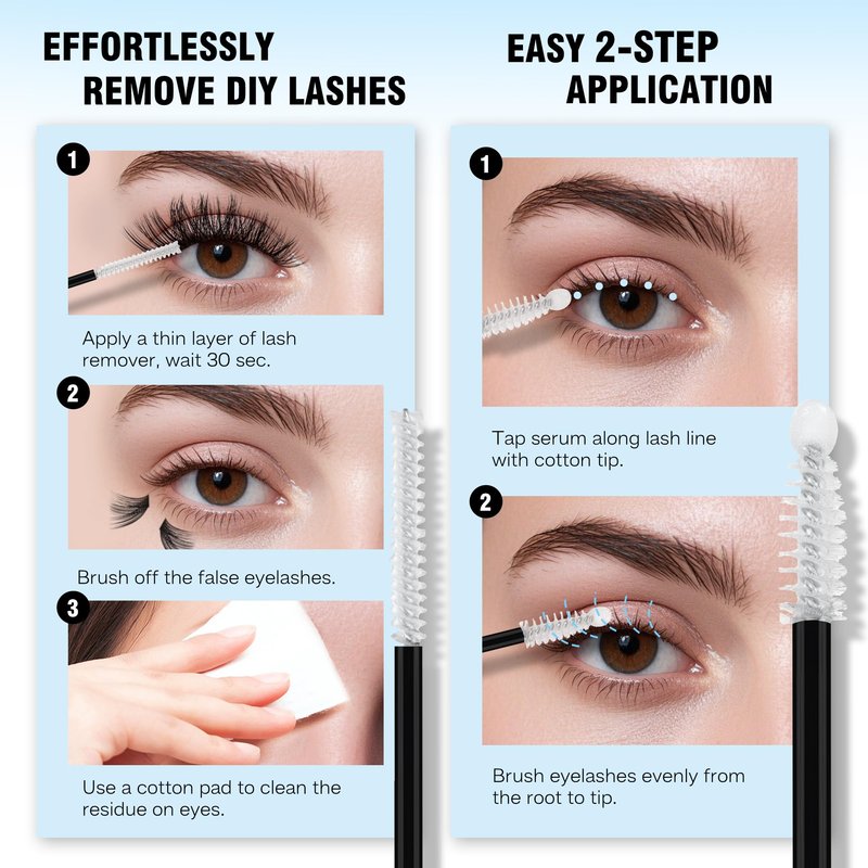 - [Double Duty Lash Saver] -- 2- in-1 Magic Wand: 30s Lash Remover + Nourishing Serum in One. The lash remover gently melts glue in 30s (no rubbing!) . The dual-ended design saves space and simplifies your lash care routine – remove & nourish in one step!
