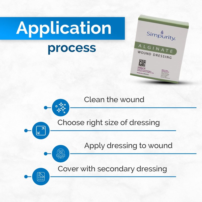 - SCOPE OF APPLICATION - Simpurity non-stick sterile calcium alginate pads are indicated for moderately to highly exuding wounds, such as pressure ulcers, leg ulcers, cavity wounds, and post-debridement hemostasis.