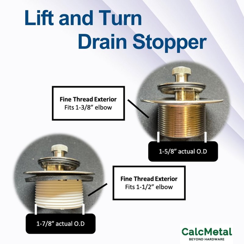 CalcMetal - Beyond Hardware The lift and turn bathtub drain stopper brings the most efficent method to your life - matching looking and easy installation. CalcMetal is a fine and reliable brand. The series collections selected by CalcMetal are not only the quality but the manufacturer-selected standard. We pay great attention to recycling, safety, quality, and durability of our products. Most importantly, the manufacturer of ESG will always be our selected partner. Set Package Includes - 1 x Lift and Turn Bathtub Plug 1 x Rubber Gasket 1 x ABS Bushing/Adapter 1 x Installation Manual