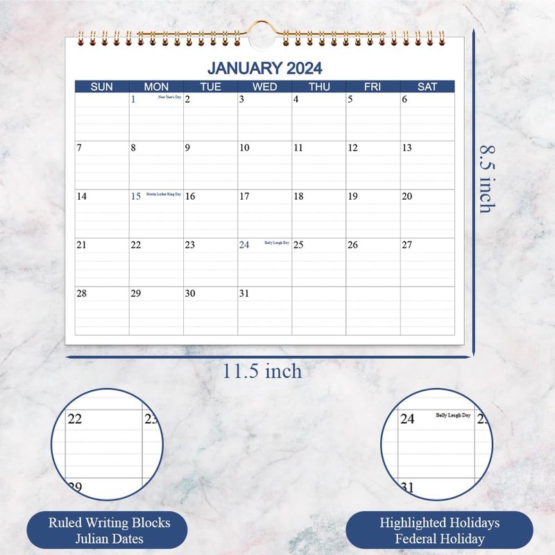 - PREMIUM QUALITY - Golden strong twin-wire binding makes it easy for turning pages and enables this 15 months wall calendar to hang on the wall steadily. Monthly wall calendar with thick premium paper to prevent ink bleed-through. Hanging calendar 2024-2025 is a great tool to make your life efficient