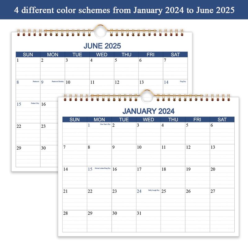 - EYE-CATCHING DESIGN - This 2024-2025 wall calendar uses classical teal color, planning your everyday in a fresh way. Federal holidays highlighted in different color to help remind you of every important holiday and manage your life efficiently