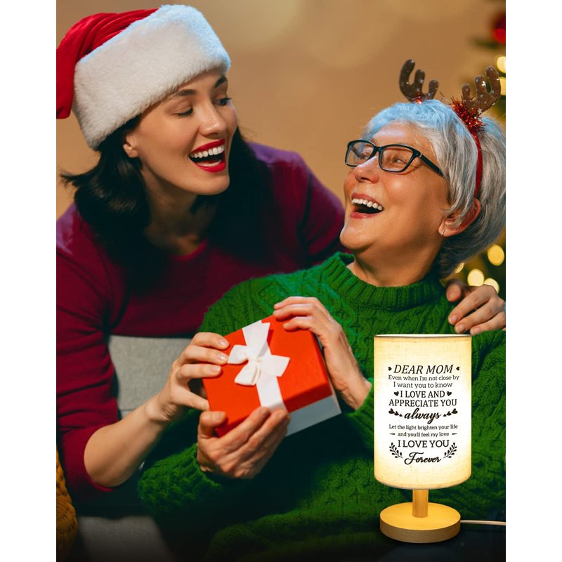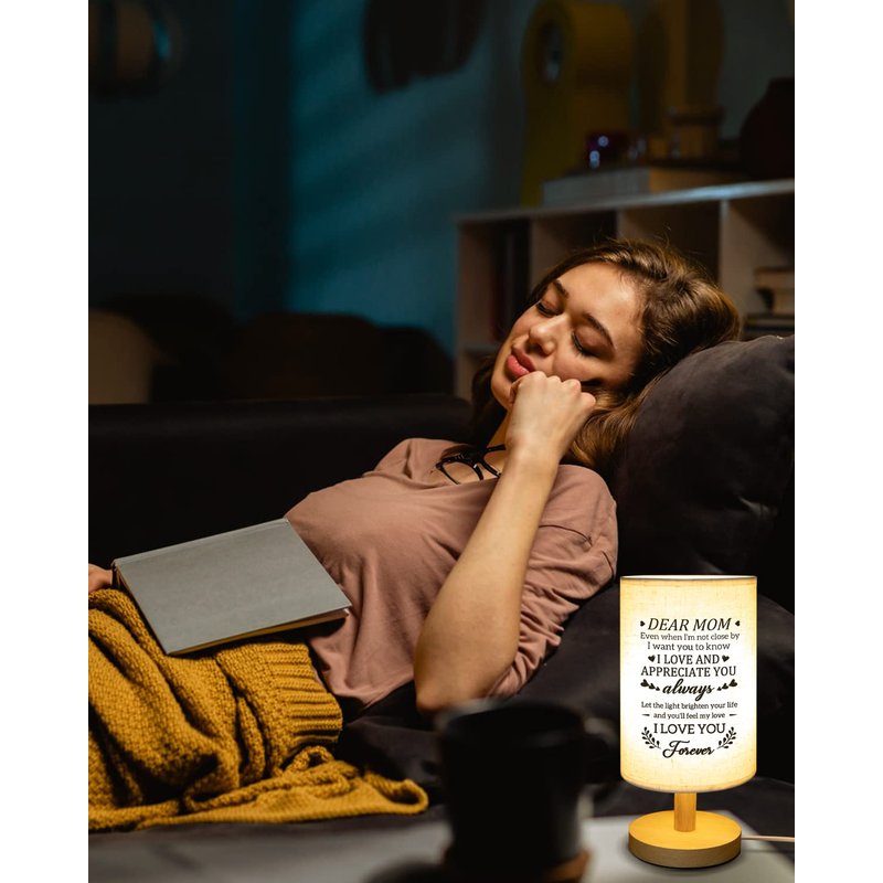 Calibron Gifts for Mom from Daughter Son, Mom Birthday Gifts Fabric Lamp, Birthday Gifts for Mom Table Lamp with Wooden Stand Unique Mom Gifts