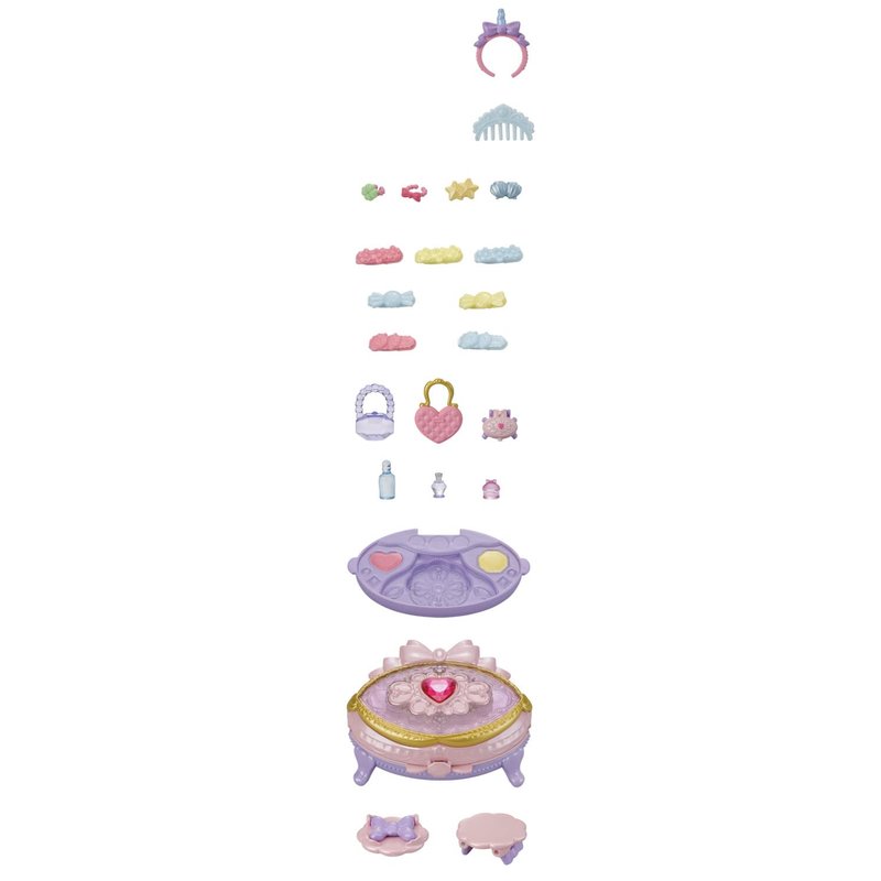 - Vanity Dresser Set includes over 20 accessories for glamorous hair styling play! Features unicorn headband, hair clips, comb, perfume and more!