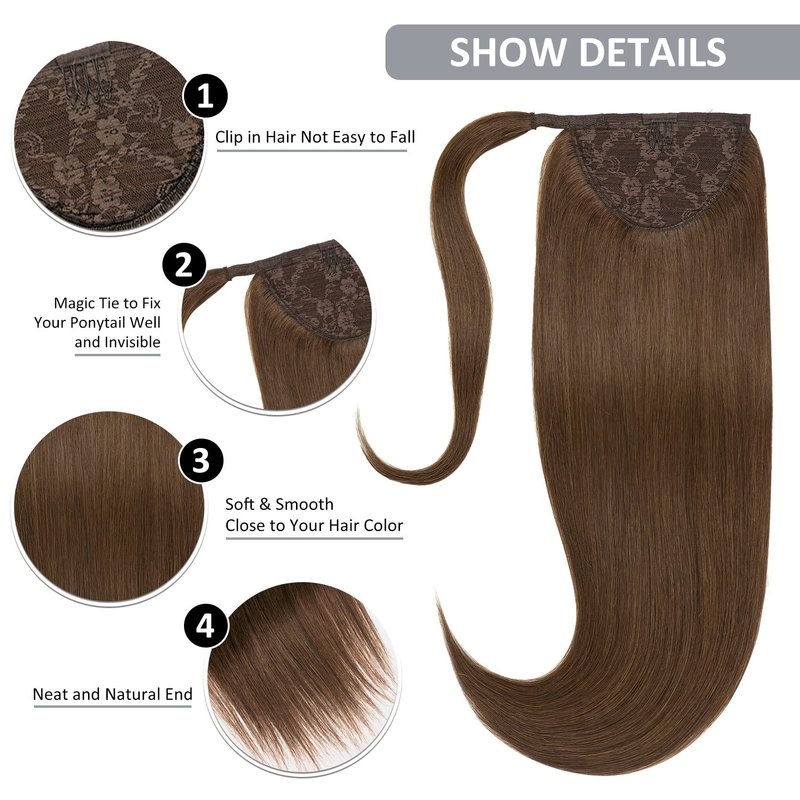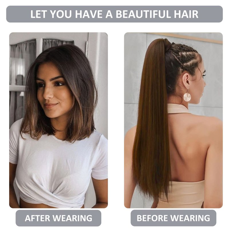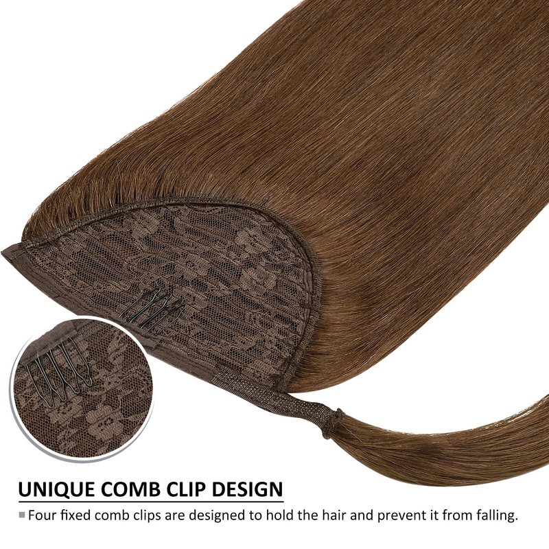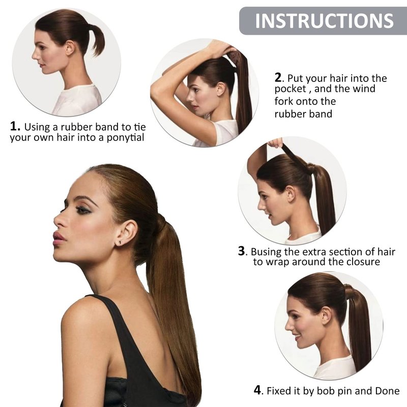 - ♛【Super Easy to Wear】—The Ponytail Human Hair Extensions comes with an easy install clip-in comb and velcro with hair ties.Just wrap/tie it around your own ponytail and you will get a long thick pony tail magically.