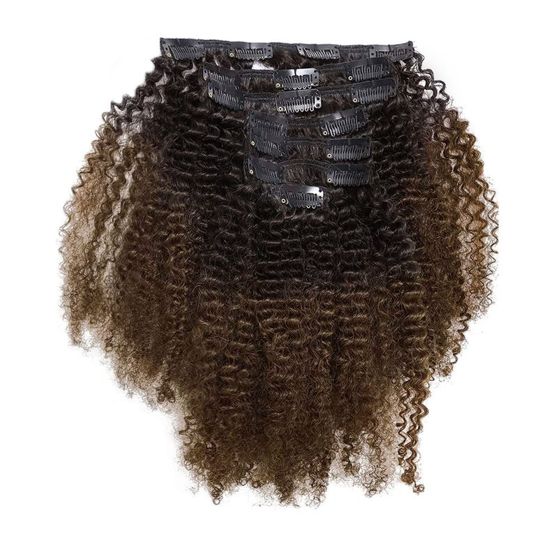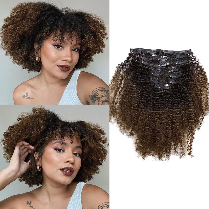 Caliee Afro Kinky Curly Clip in Hair Extensions Remy Brazilian Human Hair 4A 4B for African American Black Women Two Tone T#1B/4 Brown 120 Gram 12 Inch