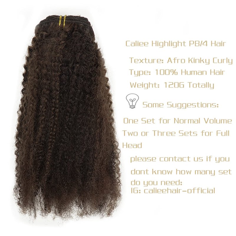 Caliee Kinky Curly Clip in Hair Extensions Real Human Hair for Black Women,Natural Hair Clip in Extensions 3C 4A Curly Clip ins Piano Dark to Brown Color 120g 7Pcs 10 Inch