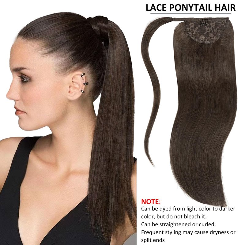 【Wrap Around Ponytail】: Hair Material: 100% remy human hair Hair Length: 14"-22" Hair Weight: 70-90g Hair Style: Silky Straight Hair life: 6-12 months (depends on use and care) 【How to wear a wrap around ponytail】: ①Tie up you hair to a ponytail. ②Insert the comb into hair (above the rubber band). ③Wrap the strap of hair around your own ponytail and fix it with the magic paste. ④Wrap the rest part of hair till its end and fix it with a bobby pin. 【About Washing & Dry】: You need to wash hair extensions after every 20 wears.Only use warm water when washing ponytail hair extensions.Use sulfate-free and alcohol-free shampoo and hair care products. Never blow dry your human hair extensions, but instead air dry them for best results.We recommend air-drying your ponytail extension using a microfibre towel.Straight ponytails could be hanged for drying. 【About Care】: Carefully and gently brush your tail from the bottom of the hair slowly working upwards towards the root. If you come across a particularly pesky knot, patiently detangle it by your fingers first. Never brush your ponytail when it is wet as this is when it could easily break. Use a wide-tooth comb or a soft-bristle brush.