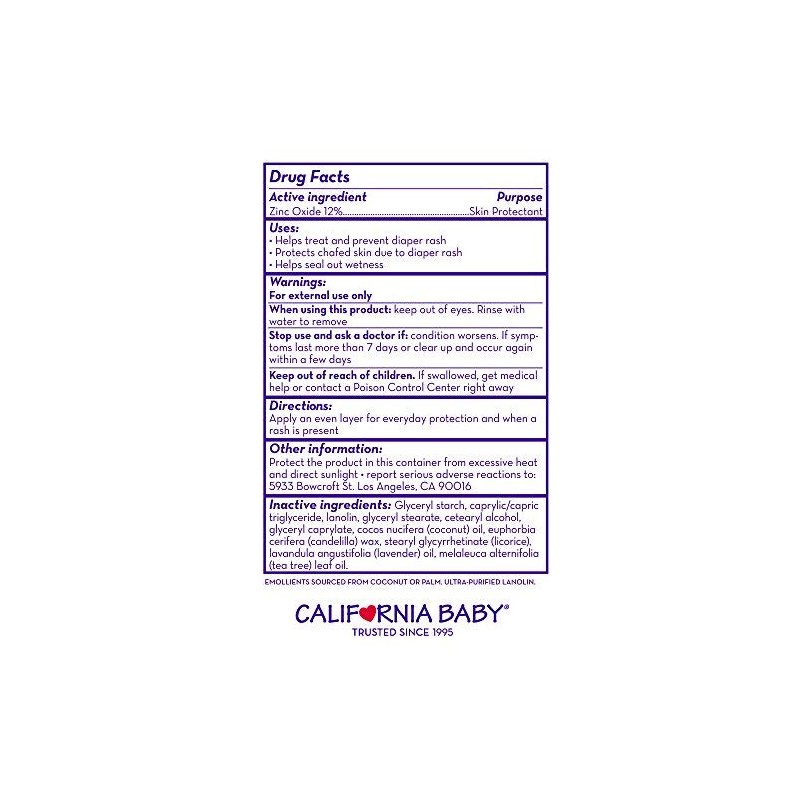 California Baby Calming Diaper Rash Cream | Zinc Oxide Ointment | 100% Bio-Based | Calming Lavender Scent | Hypoallergenic | Soothing Diaper Rash Cream For Baby | 82 g / 2.9 oz.