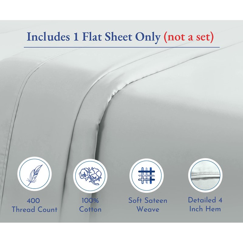 California Design Den Twin Size Flat Sheet, Soft 400 Thread Count 100% Cotton Sheet, Sateen, Cooling & Breathable Bed Sheets, Light Grey Top Sheet,Twin Sheets, Single Twin Flat Sheet Only (Light Grey)