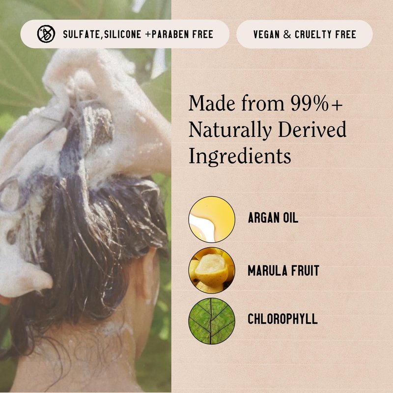 - THE GREEN GOODS: Marula Oil, Vitamin B5 and Aloe work to repair and strengthen strands, nourish scalp and cleanse without stripping.