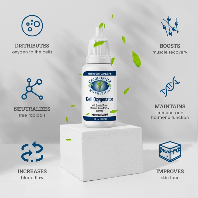 California Nutrition Cell Oxygenator Oxygen Boost, 1fl oz (30ml), Cell Food Oxygen Drops with Zinc, Support Immune System, Liquid Oxygen Dietary Supplement, Trace Minerals & Amino Acids
