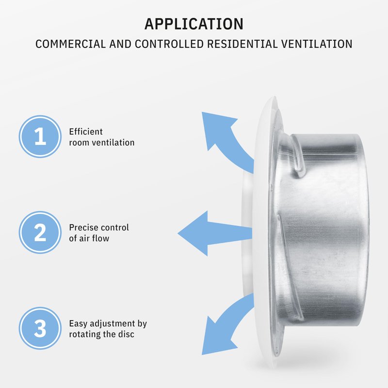- ✔️ WIDE APPLICATION The ventilation valve is designed for removing air in residential buildings, offices, kitchen, bathrooms or other air conditioning systems and can be installed on ceilings and walls.