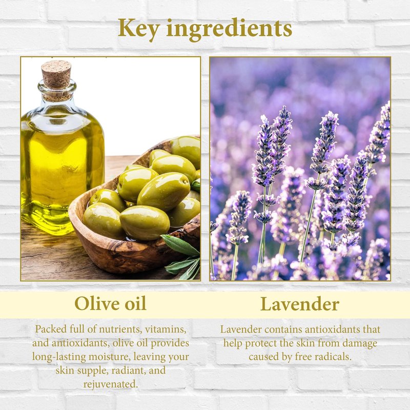 Nourish and soothe your skin with the goodness of Olive oil and Lavender