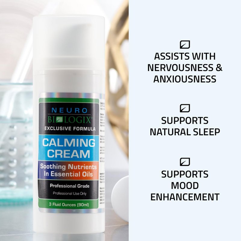 Discover the soothing power of Neurobiologix’s Calming Cream, expertly crafted with lavender oil and GABA to support relaxation, mood enhancement, and sleep; This velvety cream is designed to alleviate nervousness and may improve a calm, relaxed state, making it ideal for those experiencing occasional sleeplessness; Formulated by physicians, it contains scientifically studied ingredients that enhance skin absorption, ensuring rapid relief. Regular application can improve mood stability by naturally boosting GABA levels, helping you achieve a balanced and relaxed state efficiently.