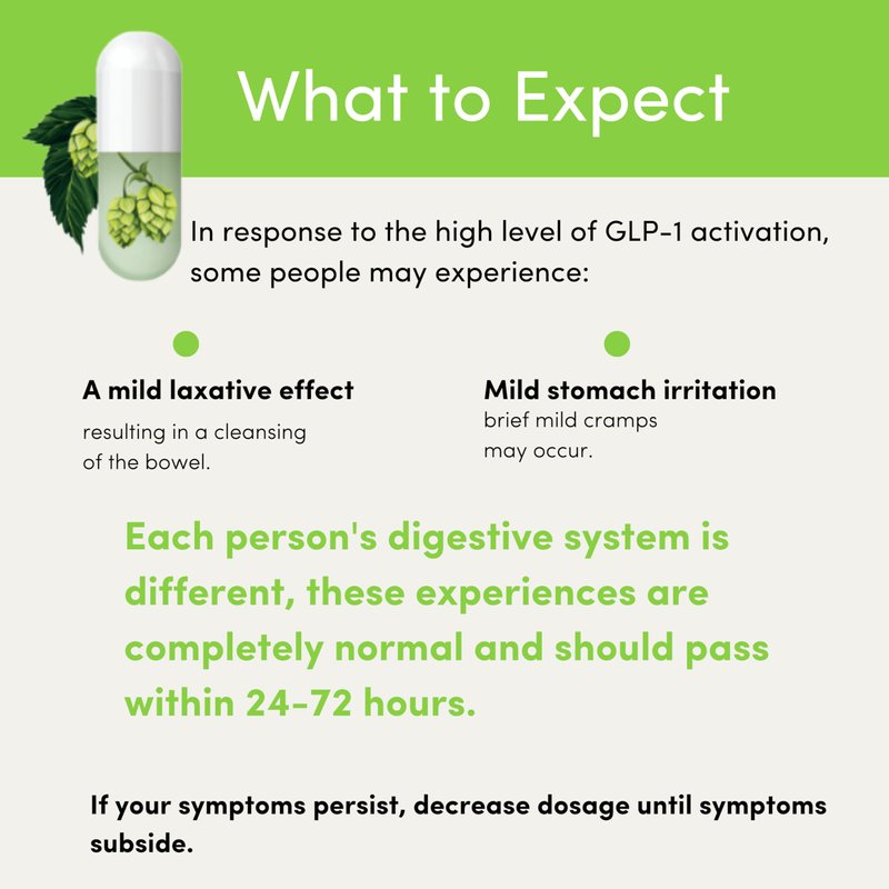 - What to Expect: Calocurb stimulates your body's natural GLP-1 production. GLP-1 is a hormone that causes satiety and can also cause a laxative effect, cramps, indigestion, or burps. Side effects like this are completely normal and indicate a high level of GLP-1 response. Each person's digestive system is different. If you experience symptoms, decrease dosage until symptoms subside