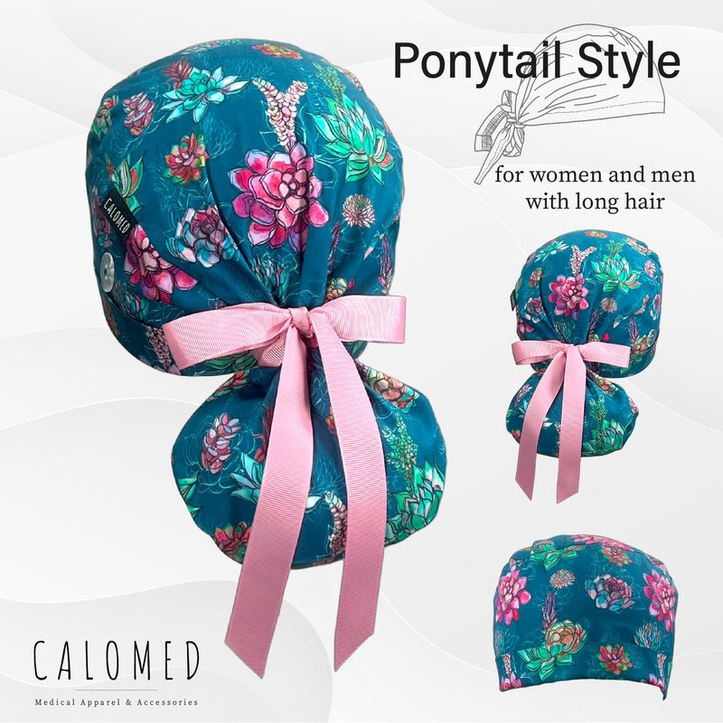ATTENTION!1. Please understand pattern placement may vary.2. Due to monitor differences, actual colors may vary slightly from what appears online. CALOMED is an American brand that creates apparel and accessories for healthcare professionals and more. It is a multinational, multicultural and multilingual company. Our main goal is to create high quality products for healthcare workers to bring good vibes, comfort and cheer to their patients and co-workers. Caregivers are our heroes all over the world. Thanks to them, our loved ones and ourselves are well cared for. We thank them very much.We offer themed caps for professionals and individuals which are made of 100% cotton printed with fun and cheerful patterns, while being comfortable, breathable, practical and ergonomic. The Ponytail style is suitable for people with very long, long or mid-length hair. It is a modern style designed mainly for women. This cap allows you to tie your hair in a ponytail. It is light, comfortable, easy to wear and is available in several themed patterns. It is adjustable at the forehead with its front pleat and the ribbons are used to tighten or loosen the cap depending on the size of your head and then to tie around your ponytail. It is a one-size-fits-most style.