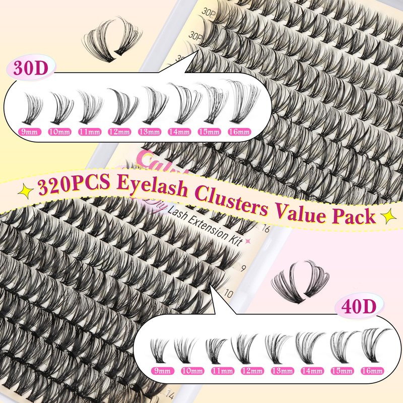 - 【30D+40D Wispy Eyelash Extension Kit】Master the art of DIY lash extensions with our 30D 40D wispy cluster lashes kit: 320pcs eyelashes clusters, lash bond and seal, lash tweezers included – achieve professional salon-like lash extensions at home