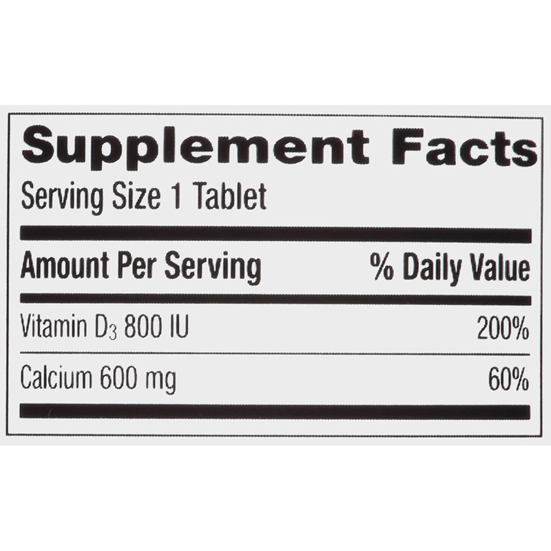 - Vitamin D and calcium tablets contain 600 mg calcium and 20 mcg of vitamin D3 per tablet