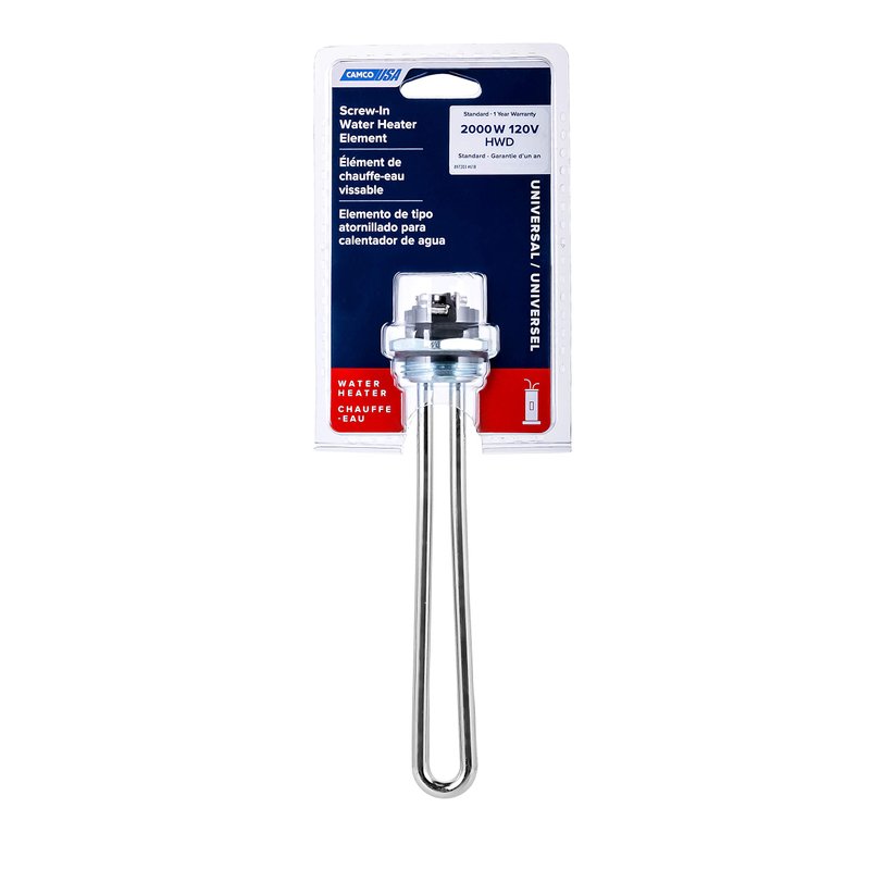 Camco 2000W/120V Screw-In Water Heater Element | Features a High Watt Density Design, a 1-11 ½-inch NPSM Steel Bushing, and is Compatible with Most Water Heaters (02203)