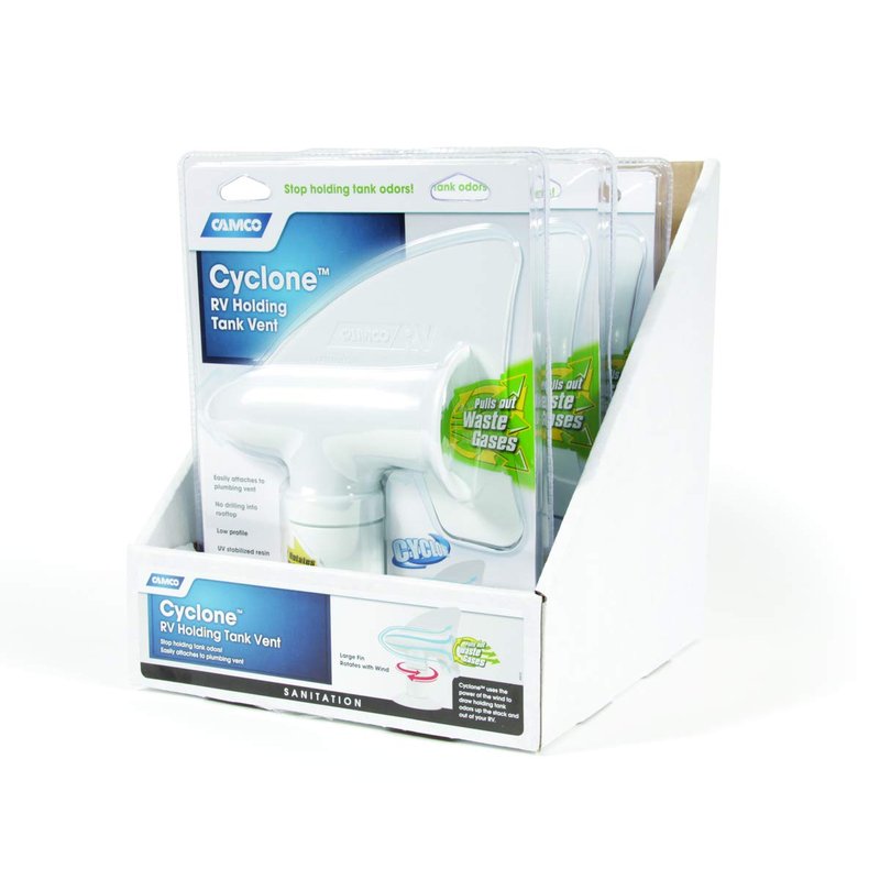 - Attaches easily to any RV plumbing vent