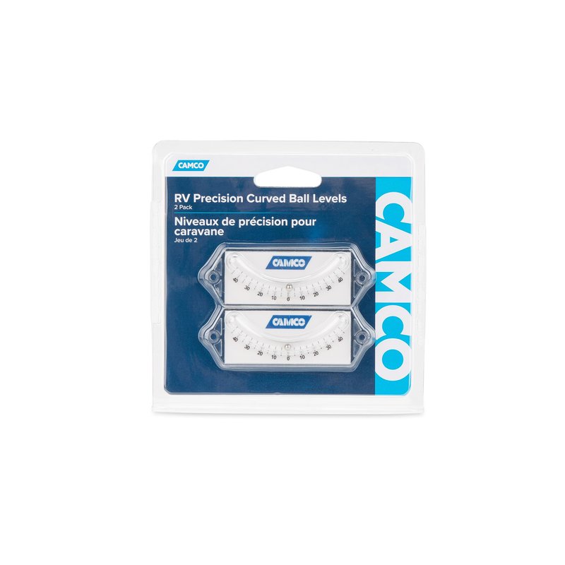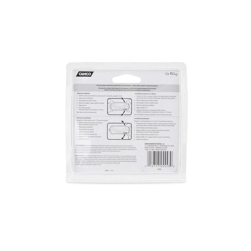 Camco Camper / RV Precision Curved Ball Level - Features Graduated Markings for Easy RV Leveling & Front to Back / Side to Side Camper Leveling - Easy Install w/ Screws or Adhesive Tape - 2-Pk (25553)