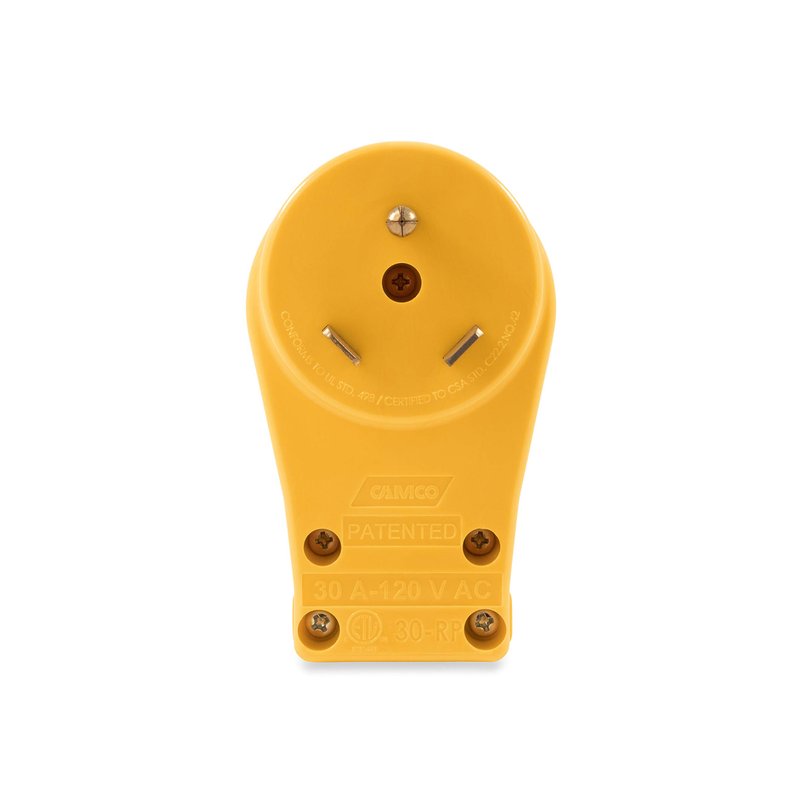 - REPLACEMENT PLUG WITH HANDLE: Camco's RV Male Plug Replacement lets you attach a standard 30A head to your existing RV extension cord.