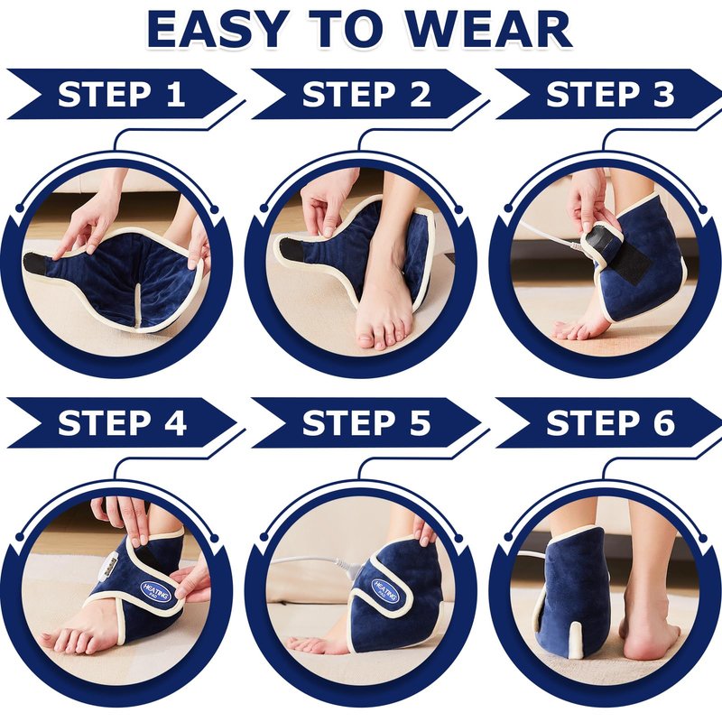 - 【One Size Fits All】 Universal size for left and right foot. The heating area is about 7.5" X 6". Sufficient area to cover achilles pain area. Offers thermal effect, increasing blood circulation for quick recovery. Comfortable to wear. The overall volume is small, light weight, easy to use and carry. Whether at work or at home, you can use it anytime, anywhere.