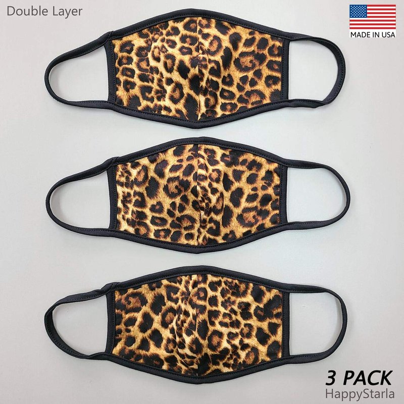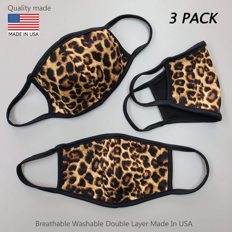 Cameleon Cover - Made in USA - Fashion Cheetah Face Mask Covering Washable Cotton Double Layer - 3 Pack (Cheetah Collection)