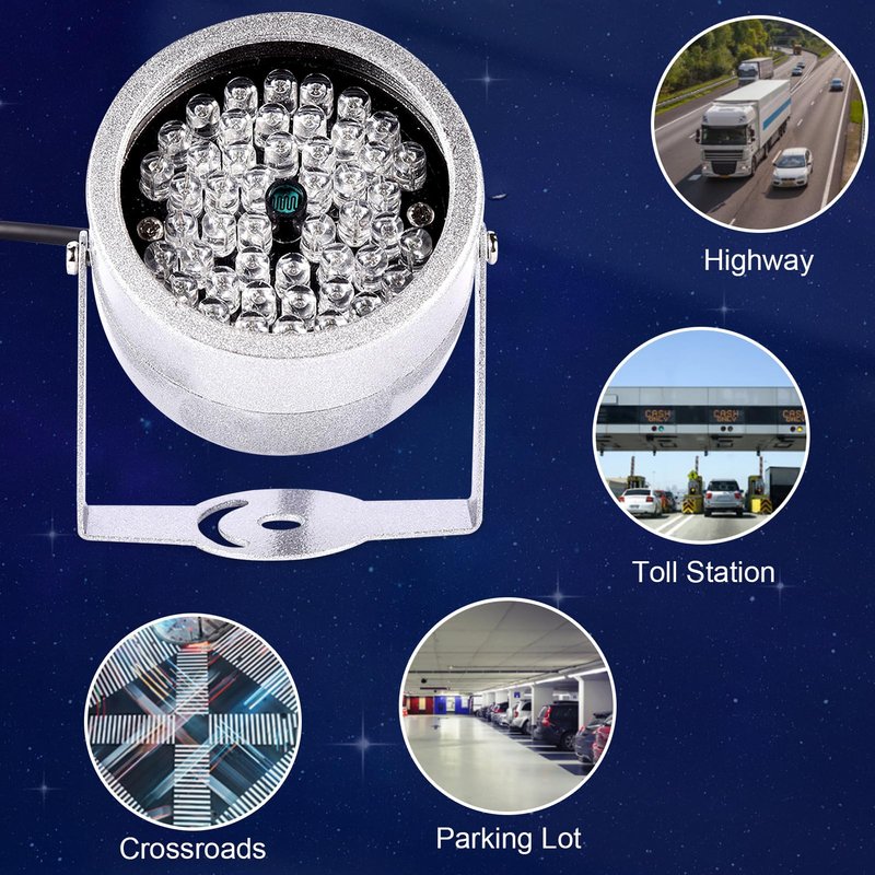 - 💡【Infrared Spotlight Wide Application】 --- The infrared security light is wide application, which can be used in electronic polices snapshot system, highway snapshot fill light, toll station, security gate system, parking lot, road monitoring, traffic junctions, license plate recognition system, etc.