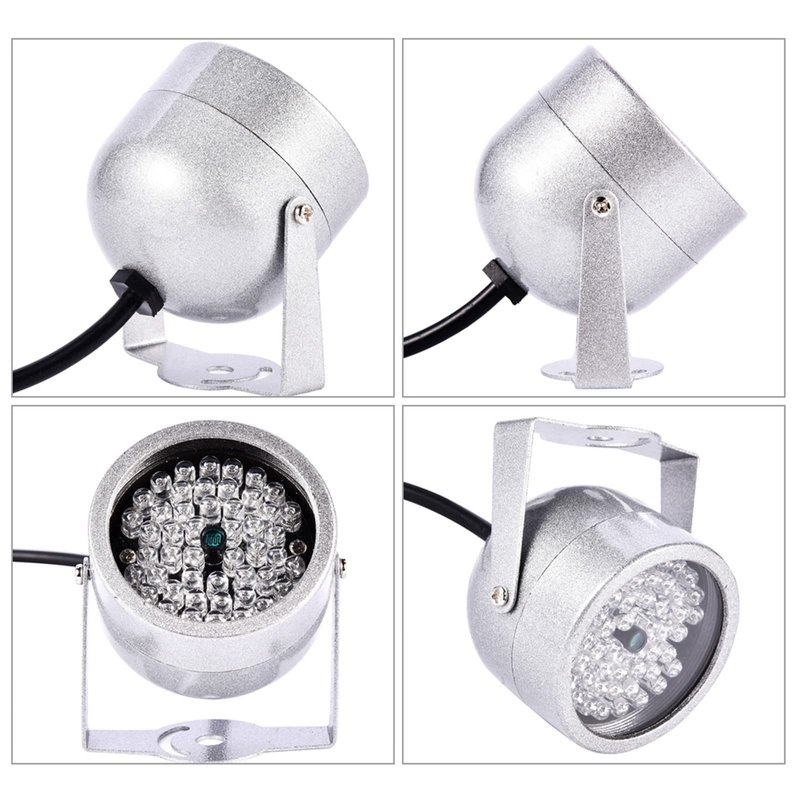 - 💡【IP65 Waterproof & Dustproof】 --- Camera llluminator durable and practical metal shell provide IP65 waterproof and dustproof protection. Infrared lamp high efficiency, low power consumption, long life. Infrared illuminator powered by DC 12V 1A adapter (not included).