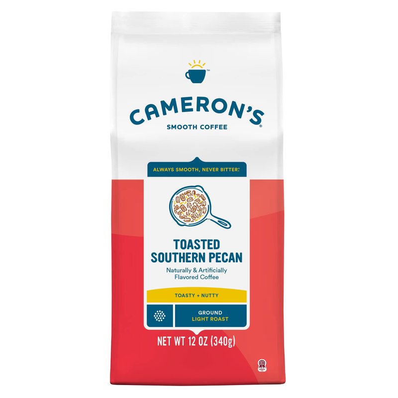 - UNIQUELY HANDCRAFTED COFFEE: One, 12 ounce bag of Cameron's Toasted Southern Pecan Blend. We craft Cameron's Coffee to be the smoothest, most flavorful coffee possible. Our coffee is sustainable, hand-crafted, and small-batch roasted.