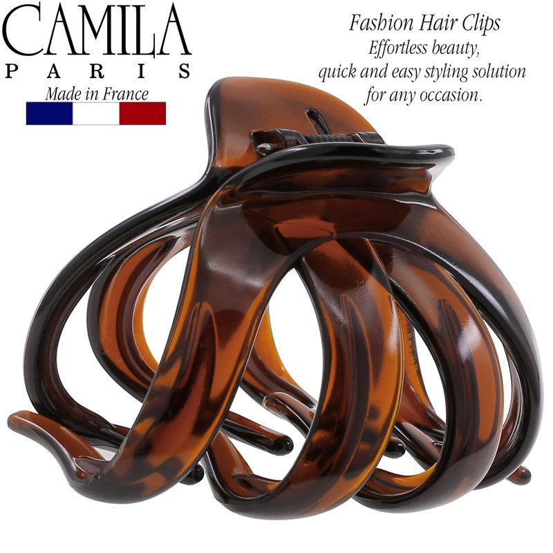 Camila Paris AD704 Size 2.5 inch French Hair Accessories, Octopus Hair Claw Clips. No Pulling or Damage. Strong Hold No Slip Grip for Women and Durable Styling Girls Hair Ornaments. Made in France with Cellulose Acetate. With its beautiful and timeless designs featuring styles as hair barrettes for women, hair clips for girls, ponytail holders, hair banana clip, headbands, Hair pins, and more, decorated with unique designs, prints, patterns and finishes like black, tortoise shell, decoration and colors. Hand-made pieces are ideal for special occasions and include a large selection of hair ornaments for everyday use. We count with innovative features such as French Grip System ideal for fine hair, Spring Cover no visible hinge, Grip Link hinge replaced for a durable rubber band that holds better and maintain the due hair for all day. Camila Paris collection are for all hair types, fashion hair tools for black brown dark light brunette blondes red heads; use for adults with curly wavy straight frizzy fine thin long medium mid back shoulder length hairstyle; cutting curling coloring drying or straightening. Camila Paris 20 years of professional experience and products knowledge, a high quality hair ornaments line. A staple of excellence in the hair accesories industry