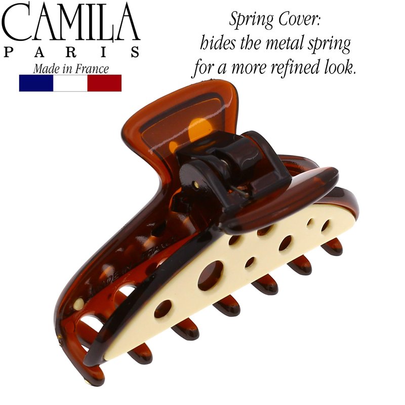Camila Paris CP2678 Size 2.25 inch French Made Hair Accessories, Hair Claw Clamp Clips, Tortoise Shell. Strong Hold No Slip Grip for Women and Durable Styling Girls Hair Ornaments. Made in France with Cellulose Acetate. With its beautiful and timeless designs featuring styles as hair barrettes for women, hair clips for girls, ponytail holders, hair banana clip, headbands, Hair pins, and more, decorated with unique designs, prints, patterns and finishes like black, tortoise shell, decoration and colors. Hand-made pieces are ideal for special occasions and include a large selection of hair ornaments for everyday use. We count with innovative features such as French Grip System ideal for fine hair, Spring Cover no visible hinge, Grip Link hinge replaced for a durable rubber band that holds better and maintain the due hair for all day. Camila Paris collection are for all hair types, fashion hair tools for black brown dark light brunette blondes red heads; use for adults with curly wavy straight frizzy fine thin long medium mid back shoulder length hairstyle; cutting curling coloring drying or straightening. Camila Paris 20 years of professional experience and products knowledge, a high quality hair ornaments line. A staple of excellence in the hair accesories industry