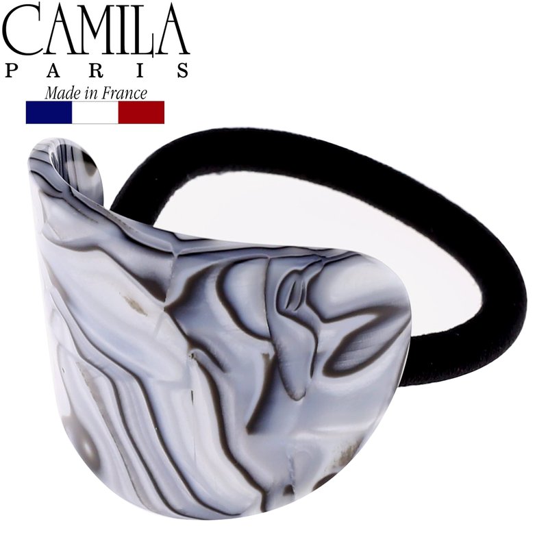 Camila Paris CP2966 French Hair Ponytail Holders Ties, Oval, Handmade, Gray, Strong Hold Grip Elastic Band Hair Clips for Women, No Slip Soft Flexible Styling Girls Hair Accessories, Made in France