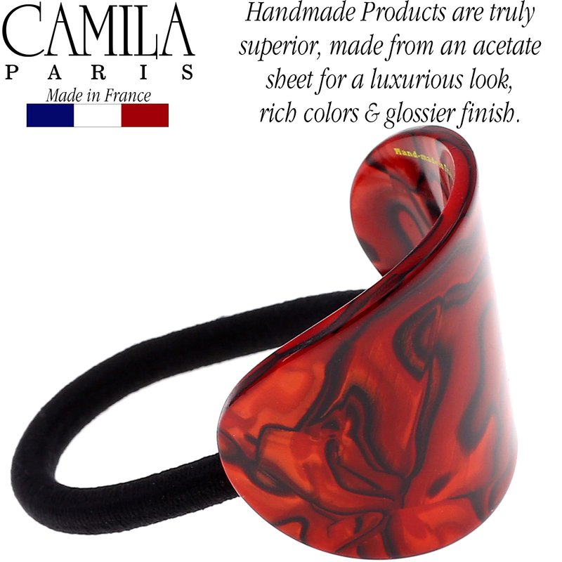 Camila Paris CP2968 French Hair Ponytail Holders Ties, Oval, Handmade, Red, Strong Hold Grip Elastic Band Hair Clips for Women, No Slip Soft Flexible Styling Girls Hair Accessories, Made in France