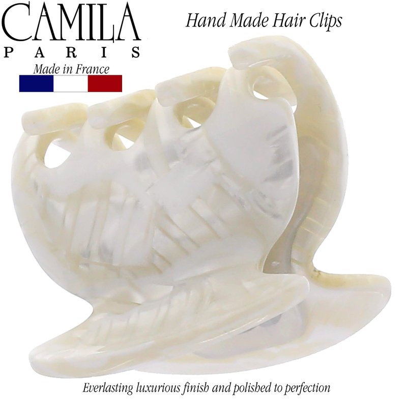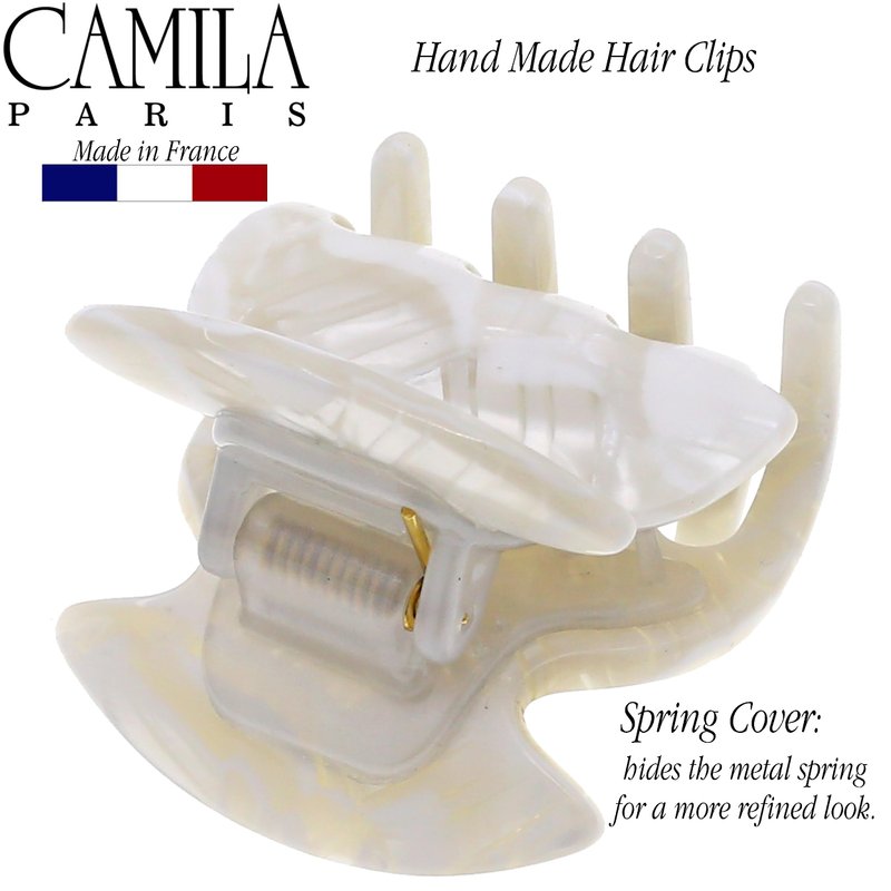Camila Paris CP3158 French Hair Clip for Women, Handmade, White, Small Girls Hair Claw Clips Jaw, Durable Styling Hair Accessories for Women, Strong Hold No Slip Grip, Made in France