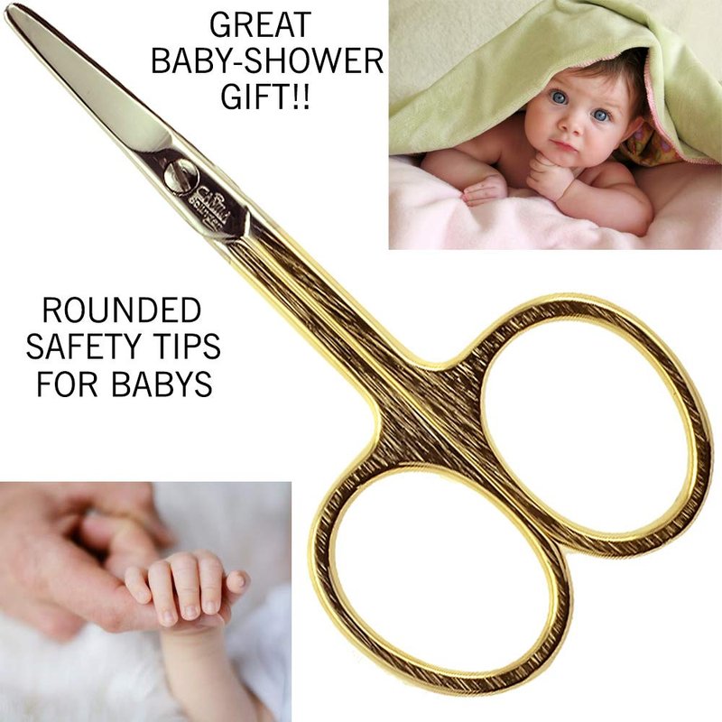 Camila Solingen CS01 Safety Tip Baby Nail Scissors for Manicure and Pedicure Grooming Scissors for Toddler Nail Care, Hypoallergenic Gold Plated Scissors. Made of Stainless Steel in Solingen, Germany