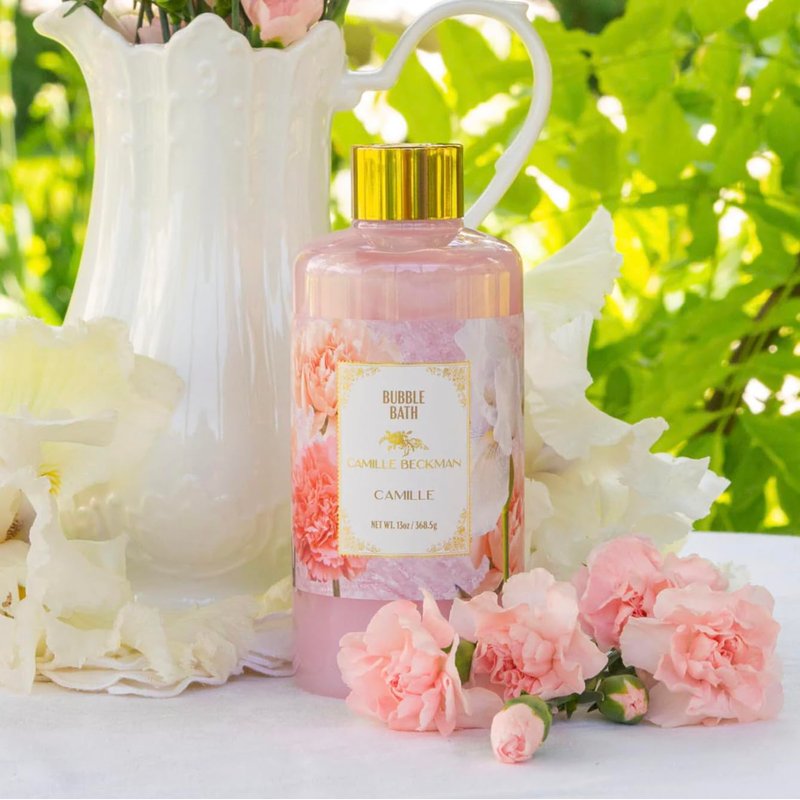 - Camille Beckman fragranced bubble bath cleanses without irritation or drying
