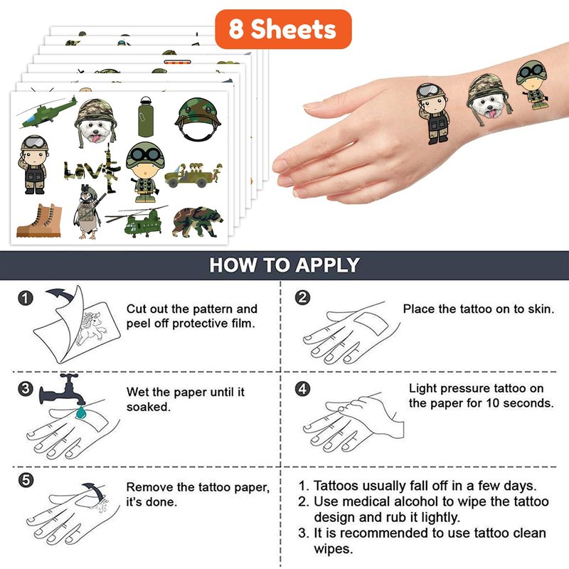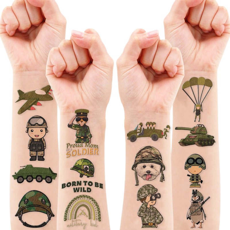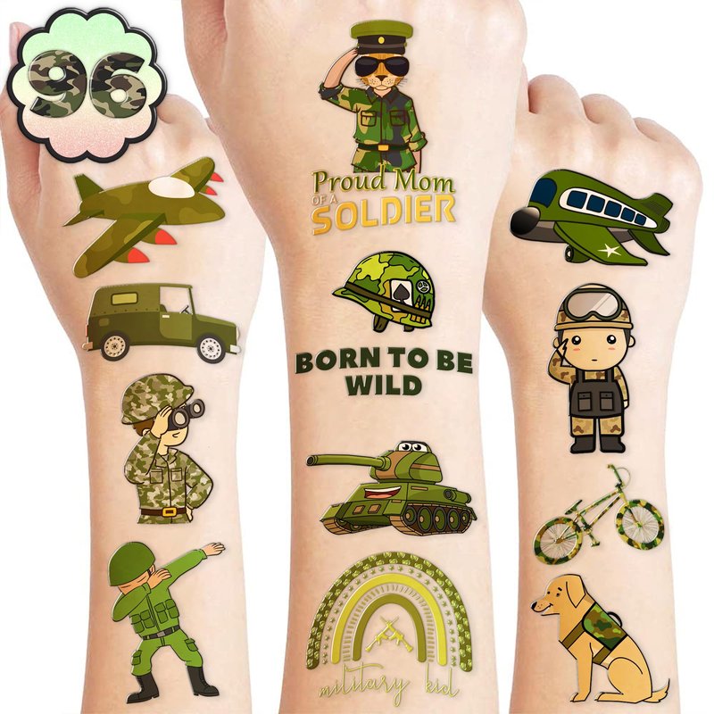 - Style: Army, Camo, Military Temporary Tattoos Sticker; Birthday Party Supplies; Birthday Decorations; Party Favors;